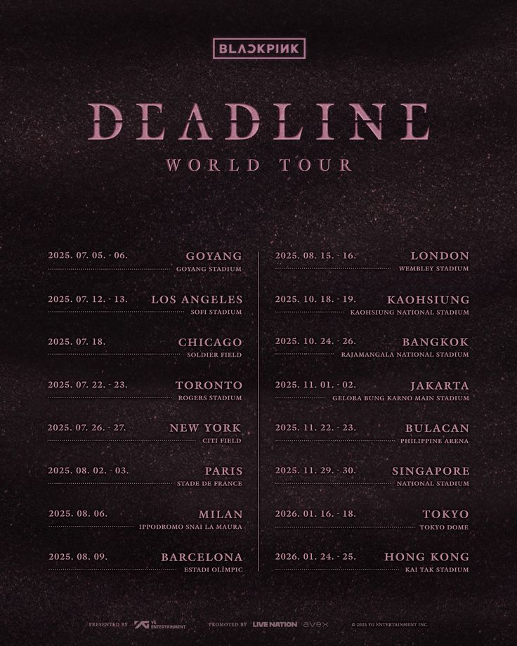 - Ex : celui de BLACKPINK déjà officiel et les dates sont déjà annoncées (avec une photo en bas)